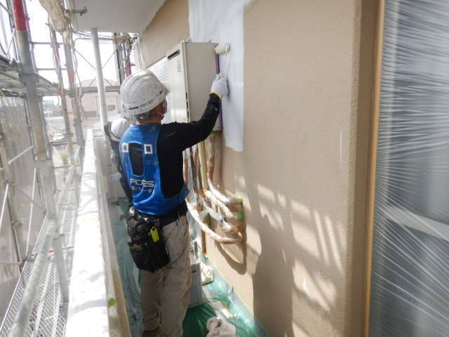 マンション全体を囲う足場を設置しました。 安全で効率的な作業環境を整え、外壁補修や塗装、防水工事がスムーズに進むよう設置しております。 近…