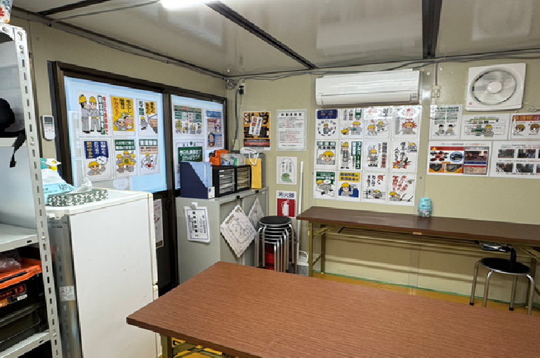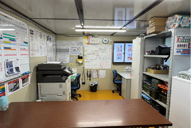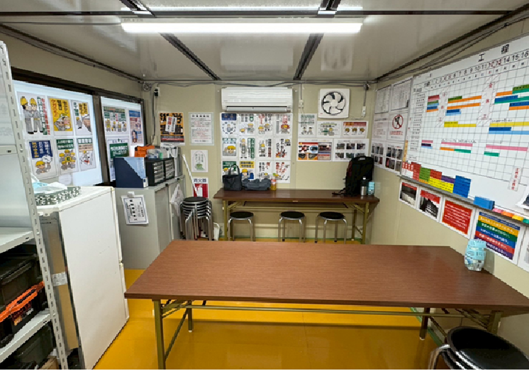 整理された環境に整えることで打合せや進捗確認を円滑に行えるだけでなく、作業員の休憩スペースとしても